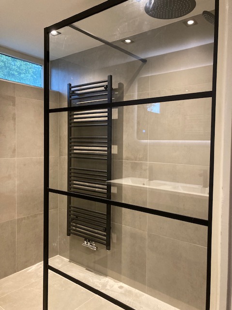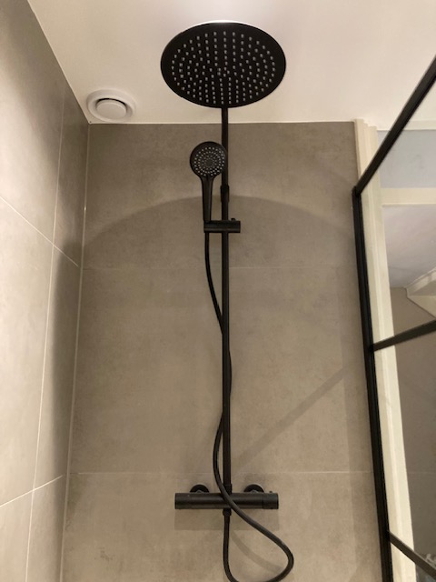 Badkamer betonlook met zwarte details